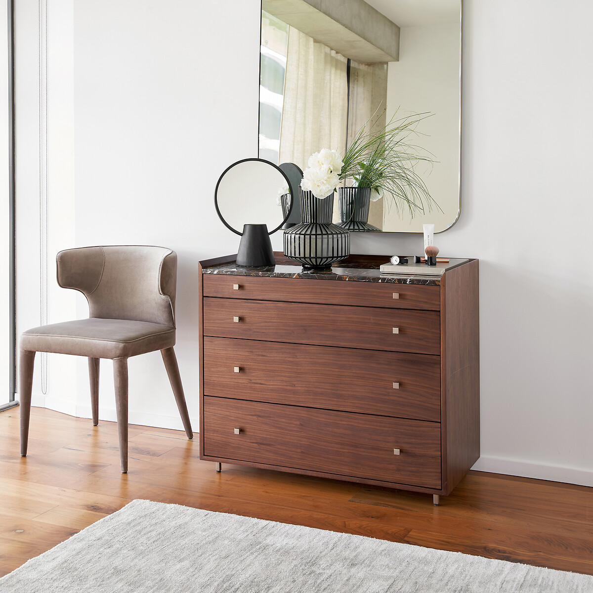 Συρταριέρα από ξύλο καρυδιάς και μάρμαρο, Noham