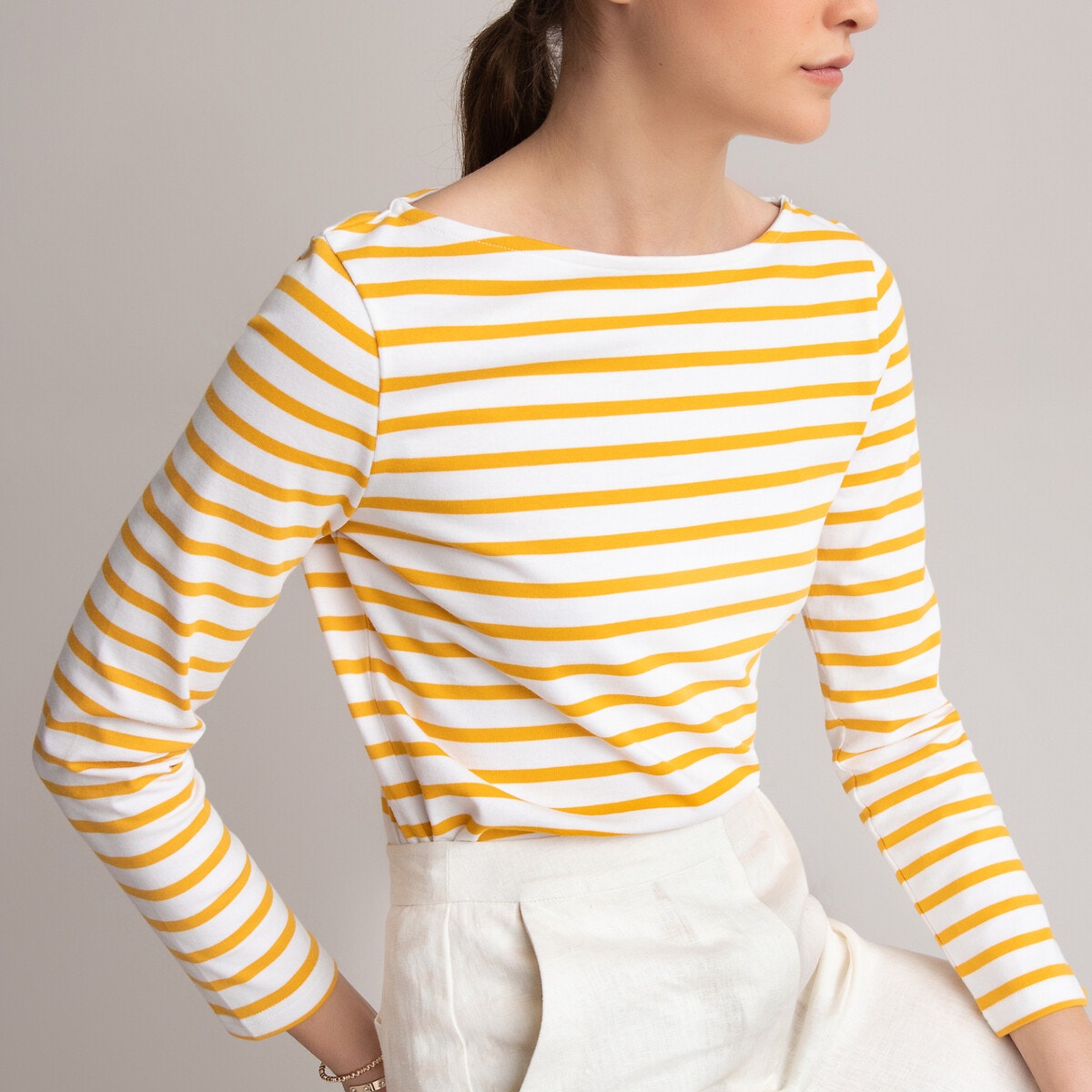 Μακρυμάνικη ριγέ μπλούζα με λαιμόκοψη χαμόγελο - La Redoute Collections