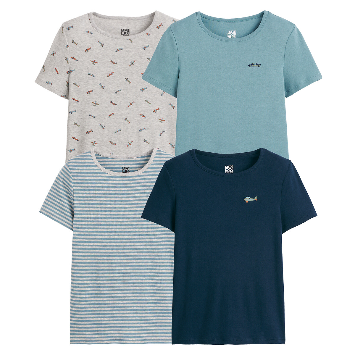 - Σετ των 4: 1 εμπριμέ με μοτίβο "αεροπλάνα και ρετρό αυτοκίνητα" + 1 μονόχρωμο με στάμπα "αυτοκίνητο" στο στήθος + 1 μονόχρωμο με στάμπα "αεροπλάνο" στο στήθος + 1 ριγέ