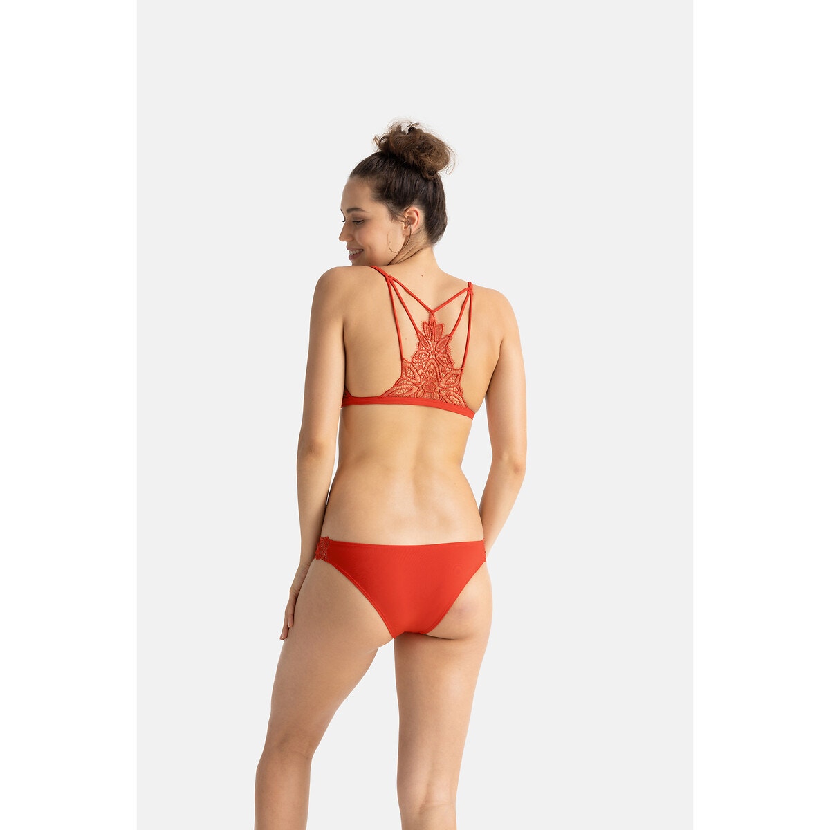 Ασορτί με το τρίγωνο σουτιέν Volta που έχει ελαφριά επένδυση και μπορντούρα από γκιπούρ δαντέλα στα πλάγια που αναδεικνύει τις καμπύλες!