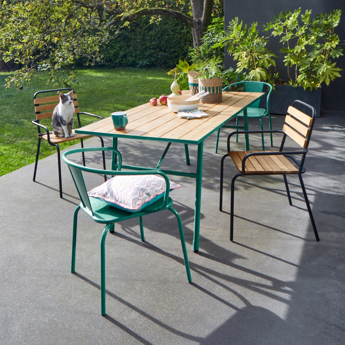 Το πτυσσόμενο τραπέζι κήπου Sohan, που συνδυάζει όμορφα το ξύλο με το μέταλλο, σας βοηθά να εξοικονομείτε χώρο ενώ αποθηκεύεται εύκολα.