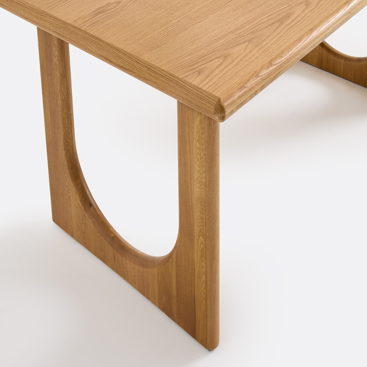 "Δημιουργώντας το Douve, ήθελα να επανερμηνεύσω το παραδοσιακό μοναστηριακό τραπέζι. Ξεχωρίζει για το σύγχρονο ύφος του, τον σκανδιναβικό χαρακτήρα και τον γλυπτικό του σχεδιασμό. μασίφ δρυς με πιστοποίηση FSC®, χοντρό καπάκι με στρογγυλεμένες άκρες και βάση σε σχήμα ανεστραμμένης αψίδας: όλη η ομορφιά της τέχνης της ξυλουργικής."