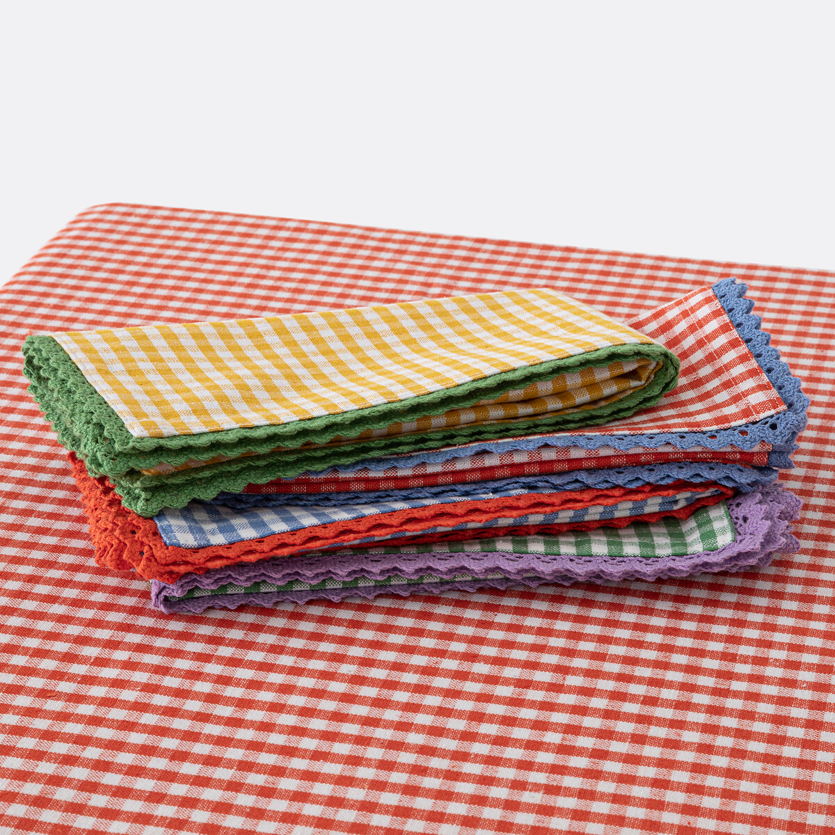 Μοτίβο με μικρά καρό και ζιγκ-ζαγκ τελείωμα. Το τραπεζομάντηλο Trattoria παραπέμπει στα τραπέζια των εστιατορίων της δεκαετίας του 50. Μια δημιουργία με την υπογραφή της La Redoute Interieurs.