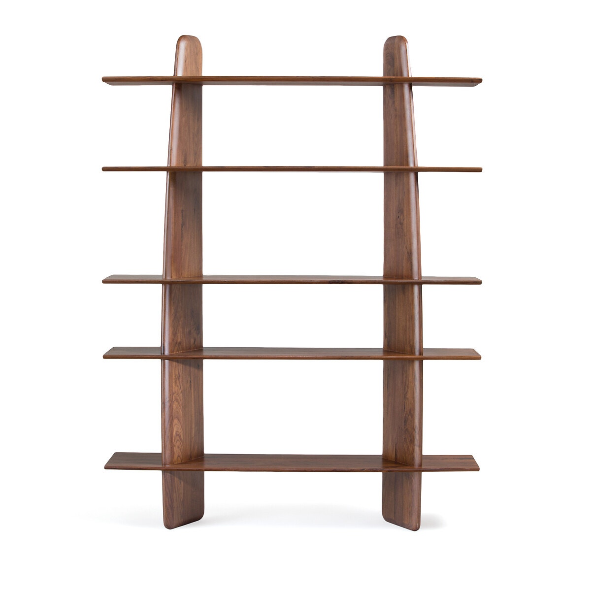 - Βιβλιοθήκη από μασίφ ξύλο καρυδιάς με ορθοστάτες σε σχήμα φτερού αεροπλάνου και φινίρισμα με πολυουρεθάνη