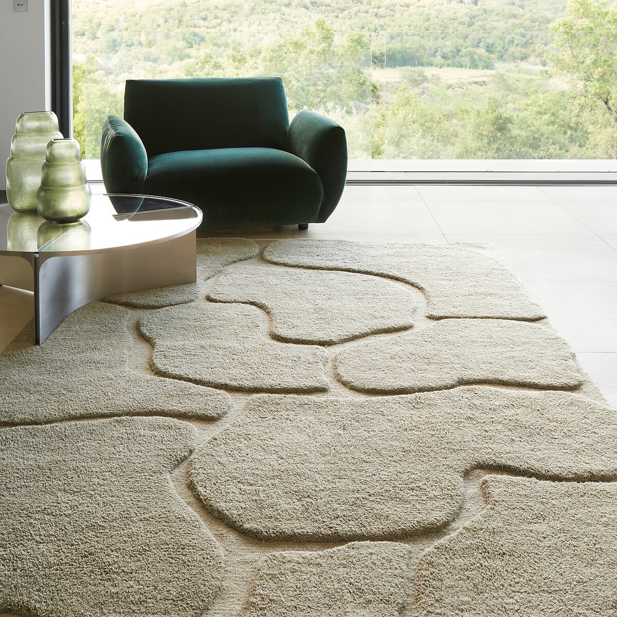 Με έμπνευση από τη βερβερική παράδοση και μοντέρνο στυλ, το χαλί Sagredo είναι ένα χαλί από 100% μαλλί με αφηρημένο σχέδιο. Πυκνό, παχύ και αφράτο, είναι φτιαγμένο στο χέρι από Ινδούς τεχνίτες. Τα μοτίβα του, εμπνευσμένα από τη φύση, δημιουργούνται από το διαφορετικό πάχος του πέλους και την ειδική ύφανσή του με τούφες μαλλιού. Σε απαλό πράσινο χρώμα για να θυμίζει τη φύση. Με την υπογραφή της AM.PM.