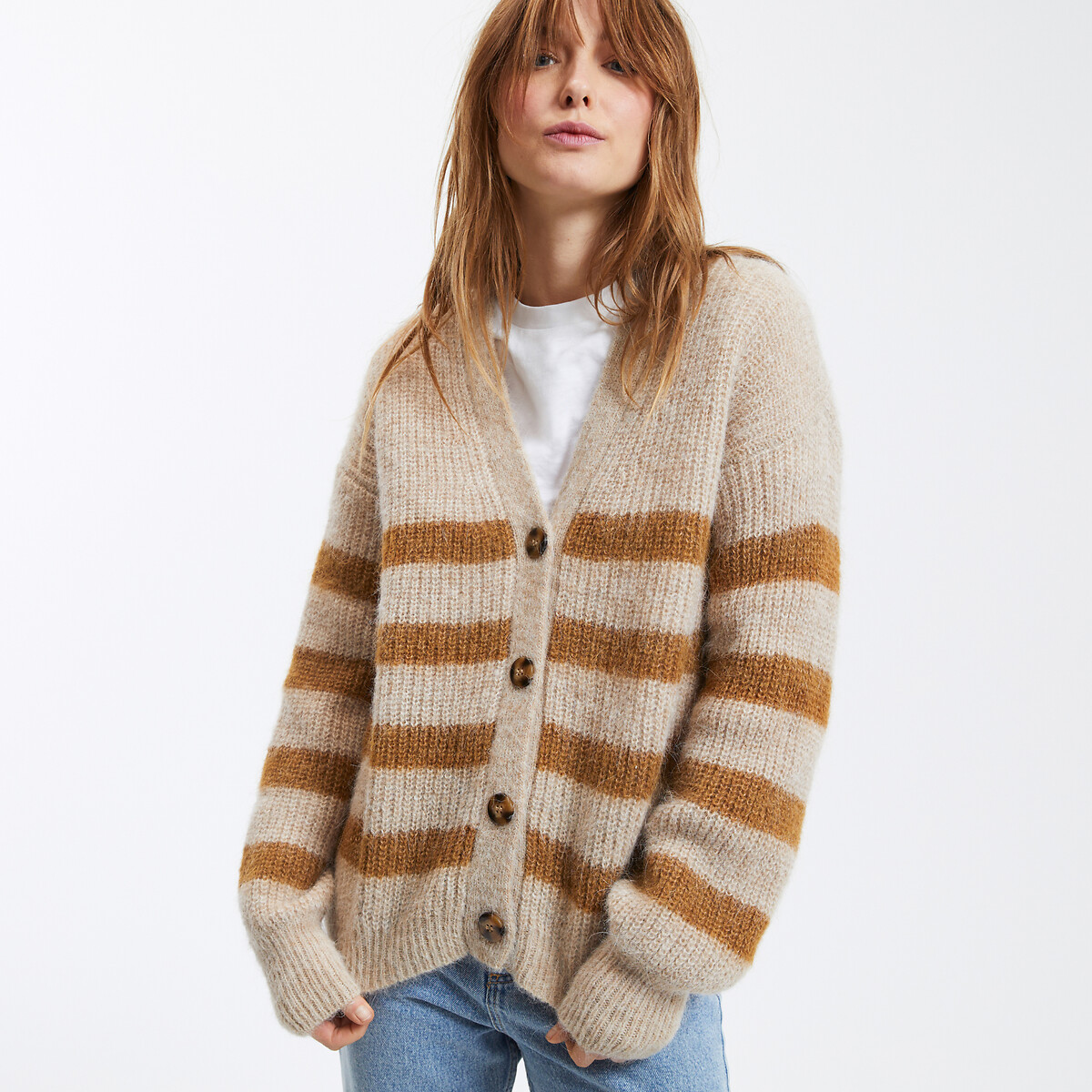 Ριγέ ζακέτα με αλπακά στη σύνθεση, Signature GILDAS - La Redoute Collections